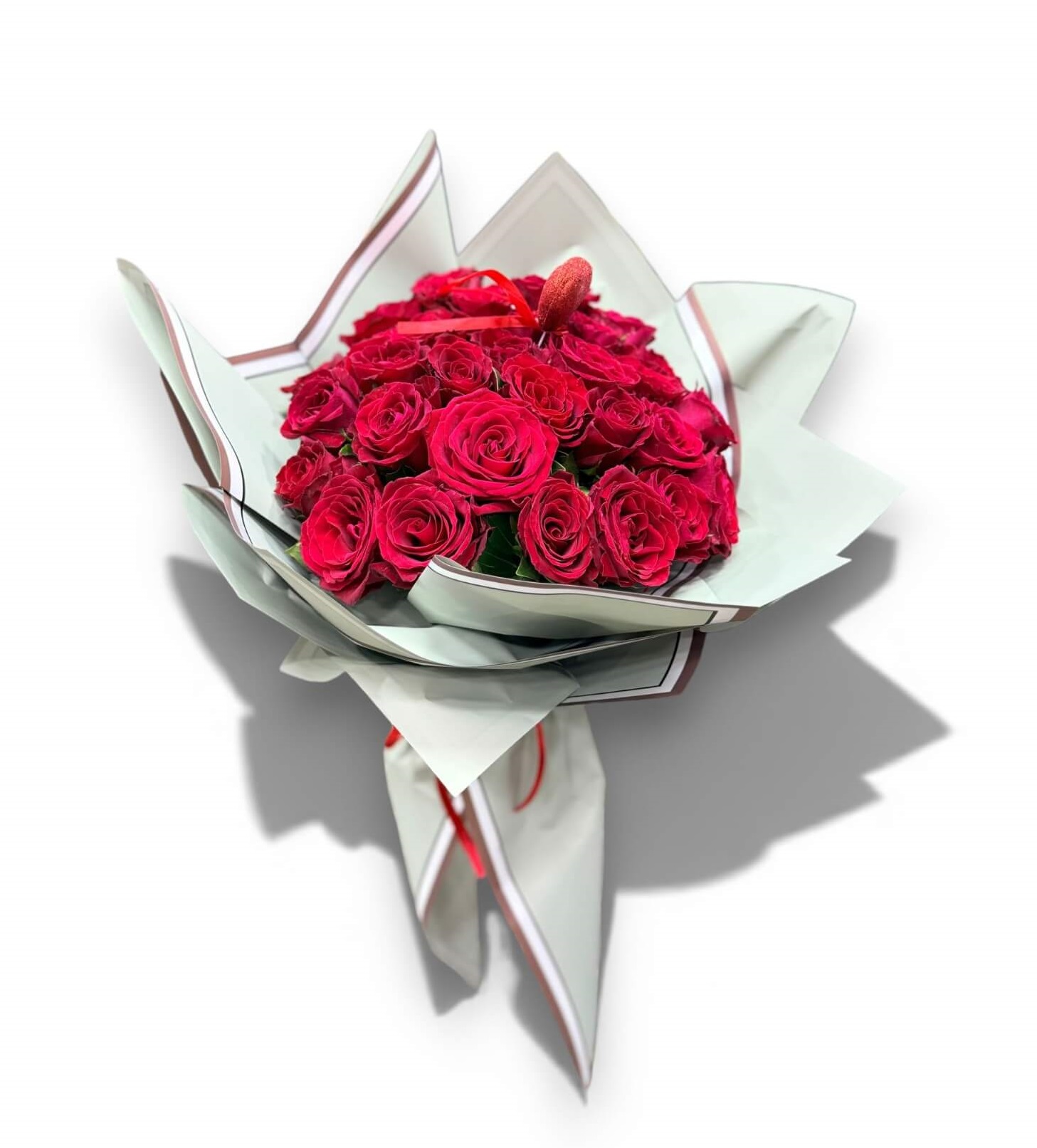 Duygularınızı en güçlü şekilde yansıtın! 30 adet birinci sınıf kırmızı gül ile hazırlanan bu özel buket, hem zarafeti hem de ihtişamı bir arada sunuyor. "Seni seviyorum" demenin en şık yollarından biri olan bu aranjman, modern kağıt ambalajı ve romantik detaylarıyla kalpleri fethetmeye hazır.